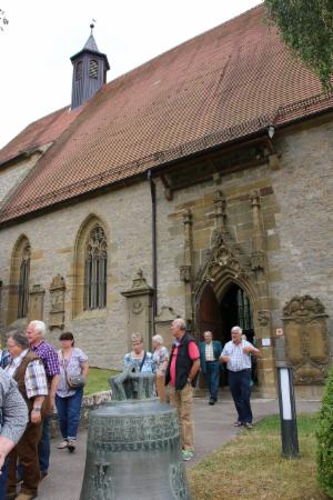 Auf der Rückfahrt machte die Gruppe noch Halt in Creglingen, wo man den Marienaltar von Tilman Riemenschneider in der Herrgottskirche besichtigte. Dieser wahrscheinlich 1505–1508 geschaffene Altaraufsatz ist eines der wichtigsten Werke mittelalterlicher Holzbildhauerkunst. Auch hier sang der Chor einige Lieder.