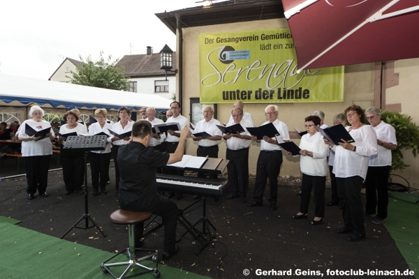 Am 21. Juli war der MGV beim Gesangverein "Gemütlichkeit" in Leinach eingeladen. An einem lauen Sommerabend gaben wir unter Chorleiter Rudolf Wurm in zwei Auftritten jeweils drei Stücke zum Besten. Insbesondere die "Golden Western Songs" wurden mit großer Begeisterung aufgenommen. Im zweiten Teil zeigte der Chor sein neues Gesicht mit Carl Orffs "Odi et Amo", bei dem der Chor so richtig laut werden durfte, sowie beim abschließenden "Yesterday" (Paul McCartney/ John Lennon).