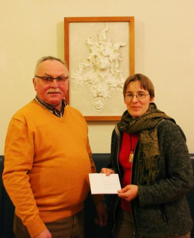 Diese Spende wurde nun Schwester Juliana, die sich seit 2011 für die Flüchtlinge, vor allem in der Gemeinschaftsunterkunft im Neuen Hafen, engagiert, übergeben. Die gelernte Krankenschwester freute sich sehr darüber, kann sie damit doch in vielen alltäglichen Einzelfällen schnell und unbürokratisch Hilfe leisten. Sei es eine Fahrkarte, medizinische Hilfe, ein Anwalt oder ein Dolmetscher in Notfällen – rasche Hilfe außerhalb der offiziellen Zuteilungen ist in vielen Fällen dringend nötig, vor allem bei Kindern.